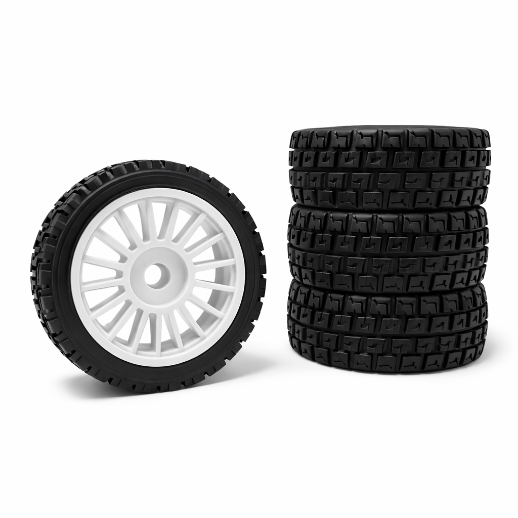 Pack of 4 White pre-glued rally style wheels to fit the MJX 10303 and 10304. Part Number P103003.